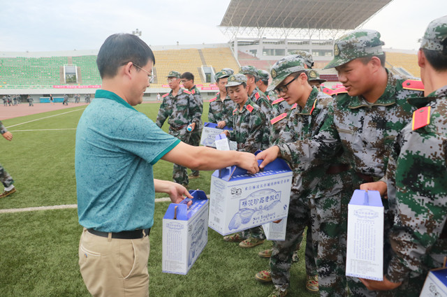 最后,学院领导为教官和新生送来了慰问品,同学们纷纷感叹学院的无私关怀亦立志要不畏艰辛、发奋训练,争取在汇演中重铸经管辉煌。