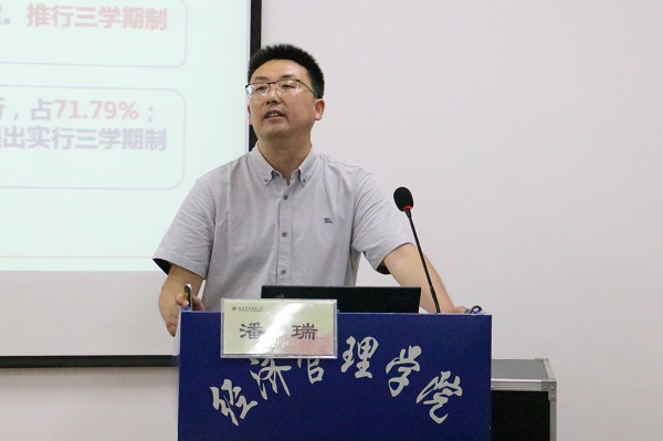 潘瑞从我校2019年三项重要改革,即三学期制教学时间调整、本科人才培养方案修订以及一流本科专业建设三个方面进行解读。他谈到,学校推行三学期制已经成为高水平大学深化教育教学改革的普遍选择,它不仅能拓展学生自主选课的空间,而且能够为校企合作培养、暑期社会实践等诸多培养环节提供有效的制度保障。