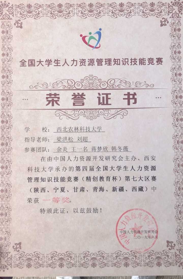 我院学子在第四届全国大学生人力资源管理知识技能竞赛(精创教育杯)第七大区赛中获得一等奖