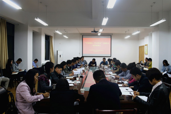 9月19日晚,经管学院“不忘初心、牢记使命”主题教育动员大会在学院C304会议室召开。学院全体班子成员、党委委员、系主任、教研室主任、各党支部书记50余人参加了会议,学校主题教育指导检查组第三工作组组长、党委统战部常务副部长惠安堂出席并讲话。学院副院长王云峰主持会议。