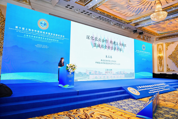 在政策对话环节,我院朱玉春教授发表了题为《深化农业合作 构建上合组织区域粮食安全共同体》的专题报告,深入剖析了农业合作与区域粮食安全的内在关联。朱玉春教授指出,上合组织国家农业发展面临水资源分布不均、土地资源有限等诸多资源与环境挑战,各国农业生产水平和农产品单产差异较大。为应对资源环境、经济基础、生产水平差异等挑战,上合组织国家应从推动农业创新与技术成果的区域交流扩散、打破农产品贸易与市场流通的区域壁垒、深化农业基础设施建设的区域协同合作等方面探索合作路径。