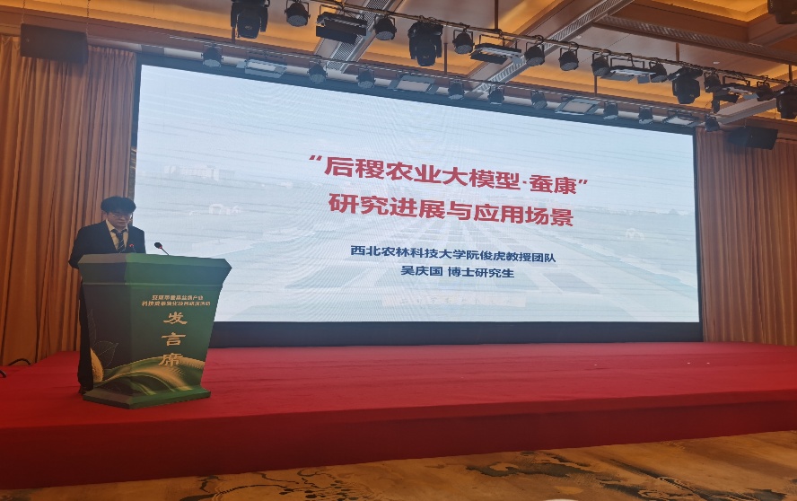 2026年4月24日,安康市科学技术局联合石泉县人民政府成功举办“安康市蚕桑丝绸产业科技成果转化项目路演”活动。在科技成果发布环节,西北农林科技大学经济管理学院阮俊虎教授团队的博士研究生吴庆国,现场推介了陕西省现代农业产业(数智农业)技术体系的科技成果——“后稷农业大模型·蚕康”,并展示了团队利用人工智能技术赋能蚕桑产业数智化转型升级的最新进展。