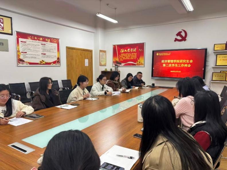 为全面总结研究生会阶段性工作成果,开展下一阶段工作部署,确保各项工作有序衔接、高效开展,11月11日下午,经济管理学院研究生会于C205会议室召开第二次负责人工作例会。学院研究生辅导员吴龙刚老师、王晓赫老师出席会议并讲话,研究生会主席团成员及各部门负责人参加会议。