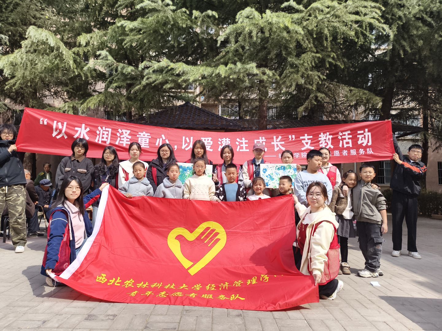 春水润万物,善举暖童心。为深入践行雷锋精神,普及节水护水知识,引导青少年树立珍惜水资源、保护水环境的环保意识,3月28日上午,经济管理学院青年志愿者服务队组织青年志愿者走进邰北社区,开展“以水润泽童心,以爱灌注成长”世界水日主题支教志愿服务活动。本次活动通过故事接龙、科学实验、创意手印树等多元互动形式,带领孩子们在趣味探索中解锁水的奥秘,在沉浸式体验中传递节水护水理念与向善奉献的雷锋精神。