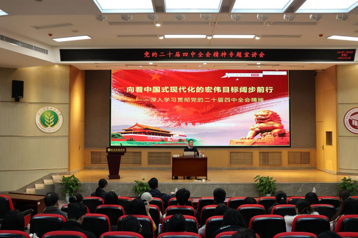 党的二十届四中全会是向第二个百年奋斗目标进军关键节点的重要会议,擘画了“十五五”蓝图,锚定了中国式现代化发展航向。为深入学习贯彻党的二十届四中全会精神,11月28日,经济管理学院第二十六期团分校第五次团课于C101成功举行。本次团课特邀马克思主义学院杨鹏教授作题为“向着中国式现代化的宏伟目标阔步前行——党的二十届四中全会精神宣讲”的报告。团分校全体学员共同学习。