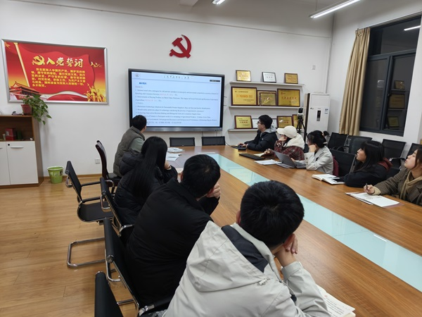 会议第一项,由郭章栋、王展鹏、沈金龙三位同志分别进行国奖经验分享。首先,郭章栋同志详细介绍了如何进行论文选题、文献阅读技巧、写作框架构建及投稿审稿等流程;随后,王展鹏同志以自己近期发表的论文为例,系统讲解了论文的写作和发表流程,并强调了团队合作的重要性;最后,沈金龙同志重点帮助大家分析了国奖的评定体系,并就个人学习习惯及能力培养方面分享了个人经验。