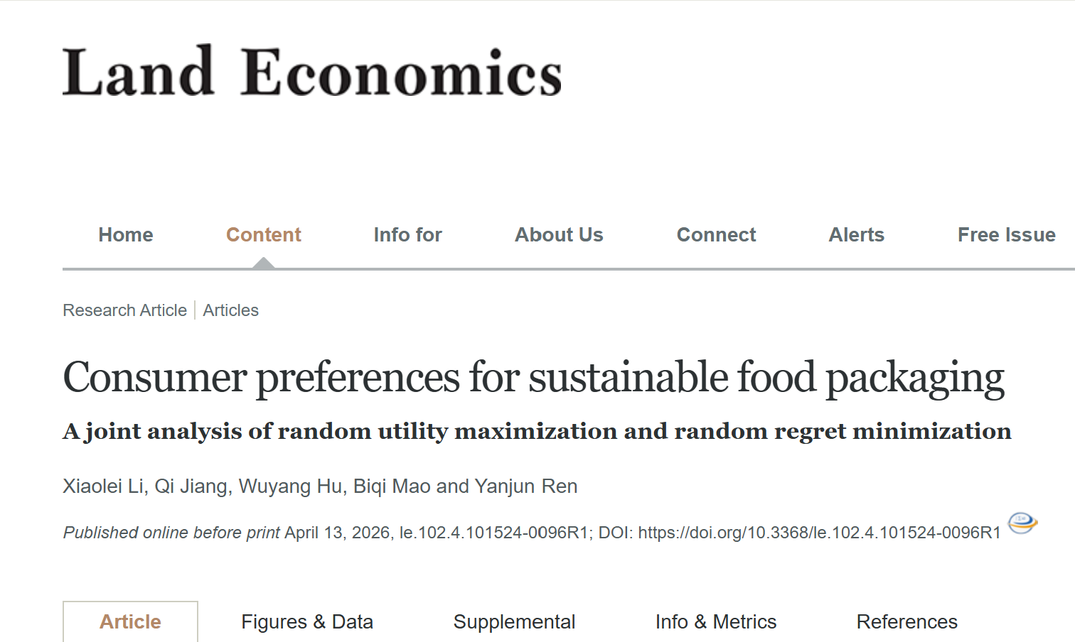 团队青年教师李晓磊在《Land Economics》发表最新研究成果