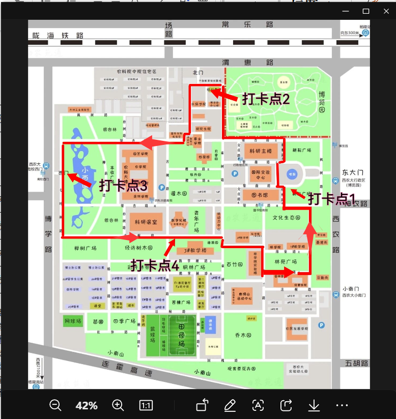 健步路线及打卡点如图所示:
