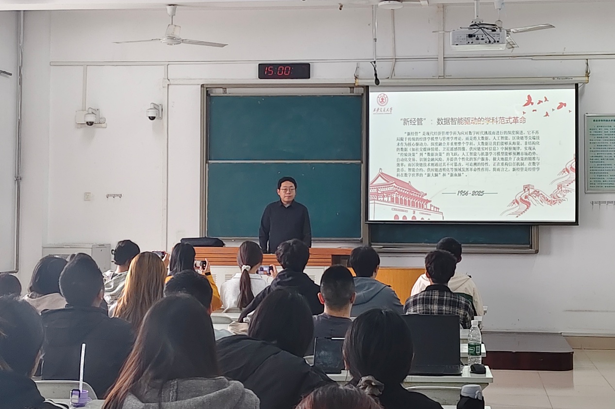 活动第二环节中,西农经济管理学院辅导员郭昊晨老师进行发言,两校同学认真聆听积极思考。他指出,农业现代化离不开金融活水与经管智慧的滋养,“新农科”的发展需“新经管”的赋能;同时他对两校共建活动表示肯定,寄语学子“勇于创新、勤于实践”。