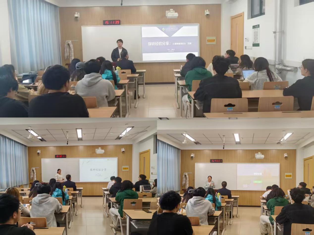 分享会分“升学逐梦”与“职场启航”两个篇章。在升学篇章中,保研至四川大学企业管理专业的谢宗含学长以“院校信息收集及夏令营填报”为主题,梳理了全流程时间线及各阶段核心任务,讲解了文书准备要点与“冲-稳-保”投递策略。本校保研的王雪钦学姐系统解析了普通推免、研究生支教团、2+3辅导员等九类保研路径的核心要求与适用人群,提醒关注专项名额及奖励指标的递补机会,用“边缘≠没戏,递补是常态”鼓励保研边缘学生坚持努力,并分享了保研与其他发展路径并行的规划方法。考研至兰州大学的白晨馨学姐从备考、心理、调剂、复试等模块分享了实战经验,介绍了压力管理方法,总结出“坚持、方法、心态、信息”四大成功关键。