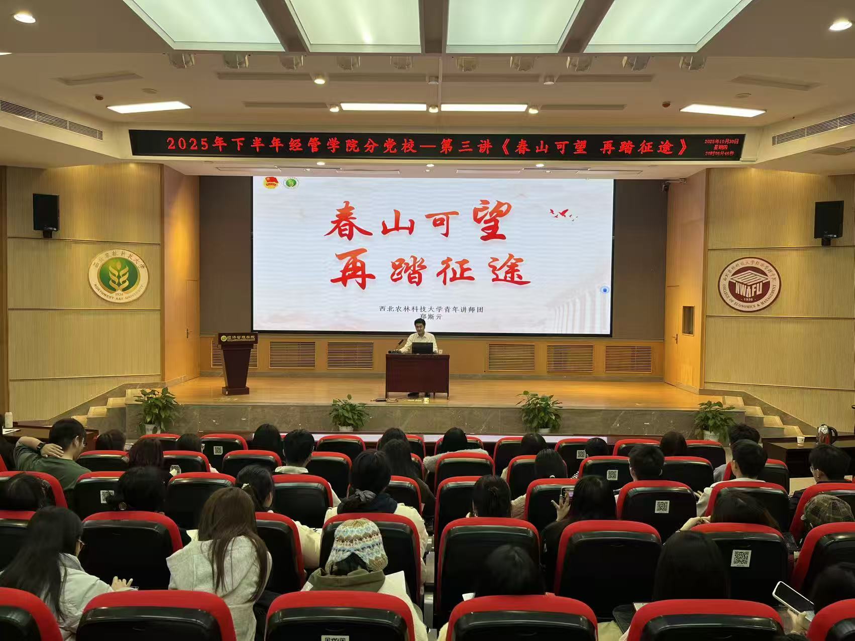 为深入学习贯彻习近平总书记关于作风建设的重要论述,引导经管学子筑牢思想根基,从总书记的经典用典中汲取奋进力量,10月30日,经济管理学院在C101报告厅成功举办第二十六期团分校第三次团课——“青听·习声回响”主题理论学习会。本次团课由 “亘塬下” 青年讲师团成员郑斯亓主讲,团分校全体学员共同参与,在思想碰撞中筑牢作风根基,在精神传承中凝聚青春担当。