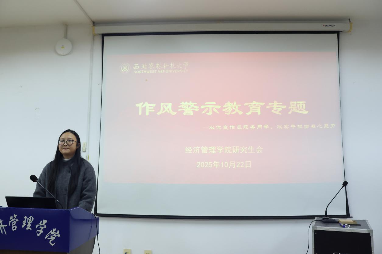 10月22日,经济管理学院研究生会于C401会议室组织开展了以“以优良作风服务同学,以实干担当凝心聚力”为主题的作风警示教育活动,旨在进一步加强研究生会组织建设,提升服务同学的效能和水平。
