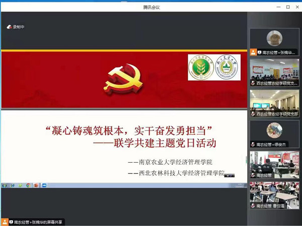 “如何心系三农,脚踏实地?”“怎样在实践中发现并解决问题?”为提高学院研究生党员的理论知识水平和党性修养,在科研学习中紧密关注社会发展真切需要,6月13日下午,农经学硕一、二、三支部联合南京农业大学经济管理学院共同举办“凝心铸魂筑根本,实干奋发勇担当”联学共建活动,农经学硕一、二、三支部全体成员参加了交流,会议由二支部书记王浩阳主持。